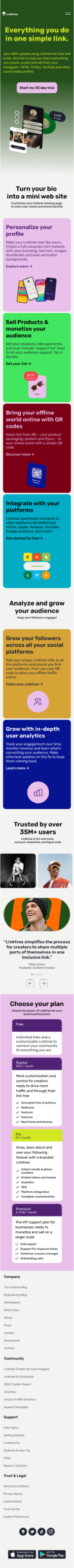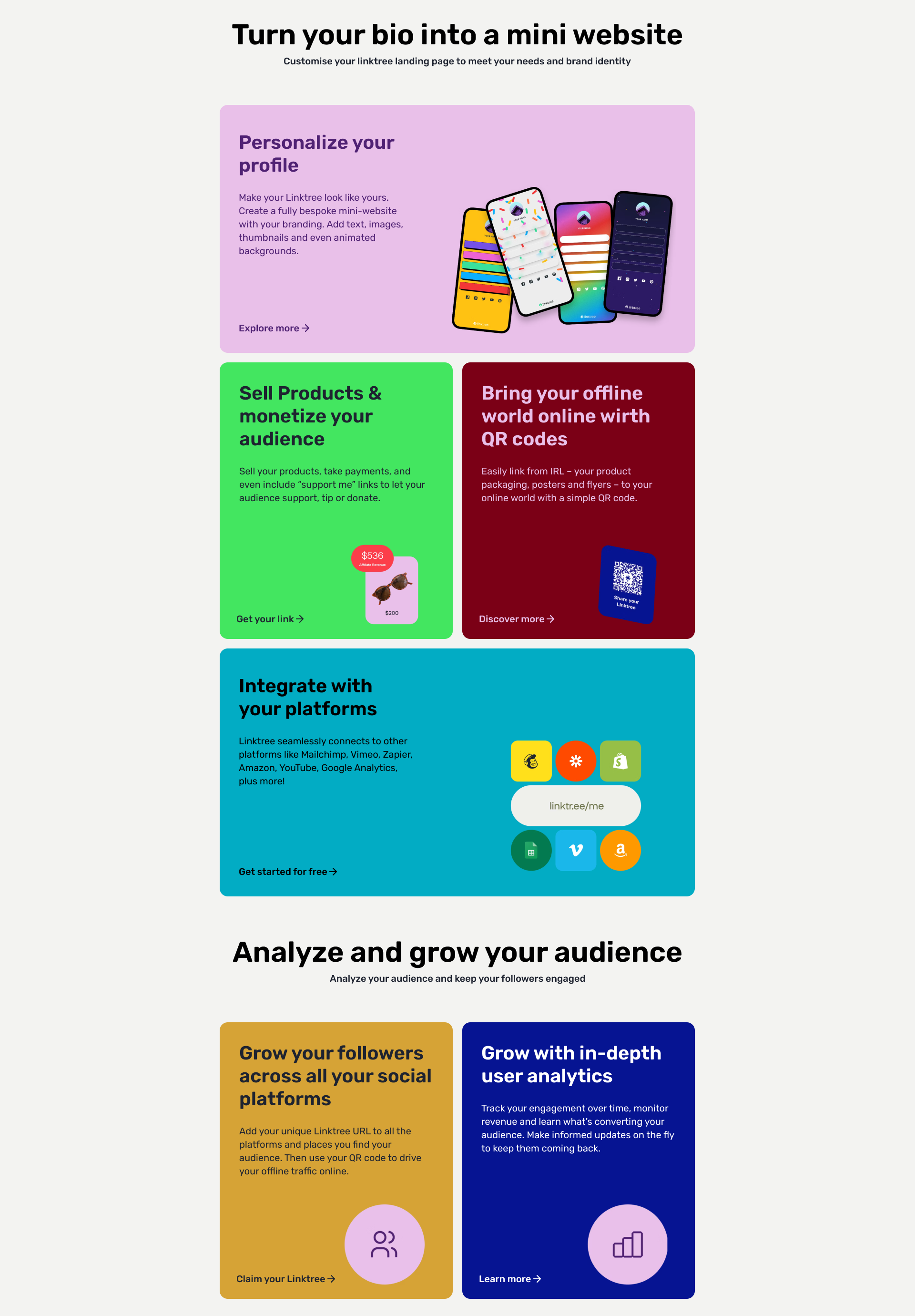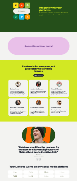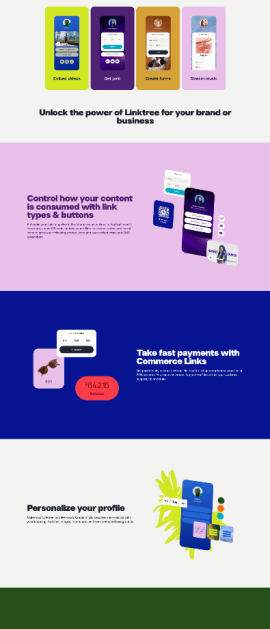 The card format not only organises information but also incorporates Linktree's vibrant colour palette without overwhelming the users.