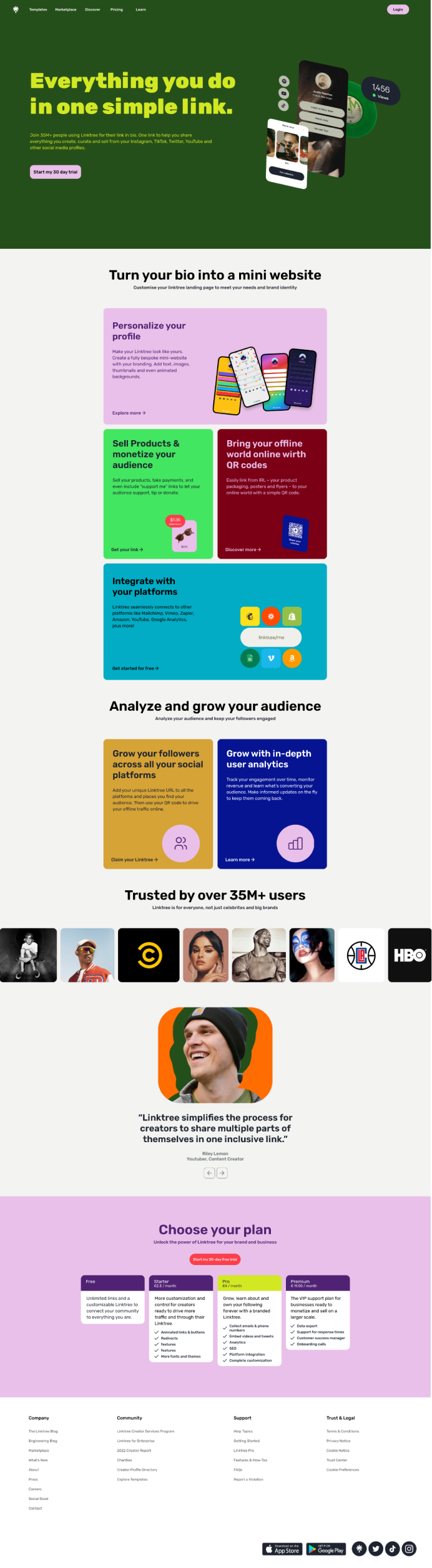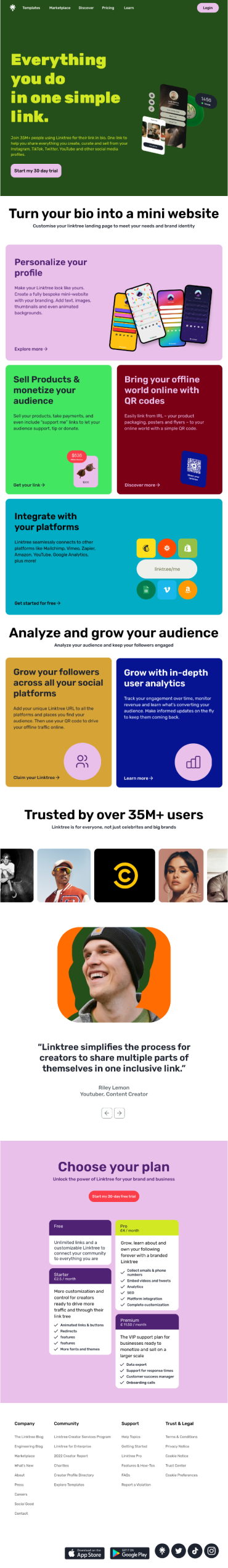 Linktree simplifies link-sharing on social media by consolidating multiple links into a single shareable link. While working as a social media manager at an art gallery, I utilized Linktree to drive traffic to the gallery’s website. Despite the tool's user-friendliness, I found the landing page information unclear. This prompted me to redesign Linktree’s homepage for a more concise and understandable user experience, focusing on delivering clear information while maintaining the brand's aesthetic identity.