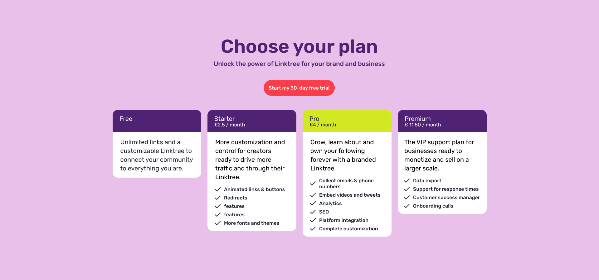 The card format not only organises information but also incorporates Linktree's vibrant colour palette without overwhelming the users.